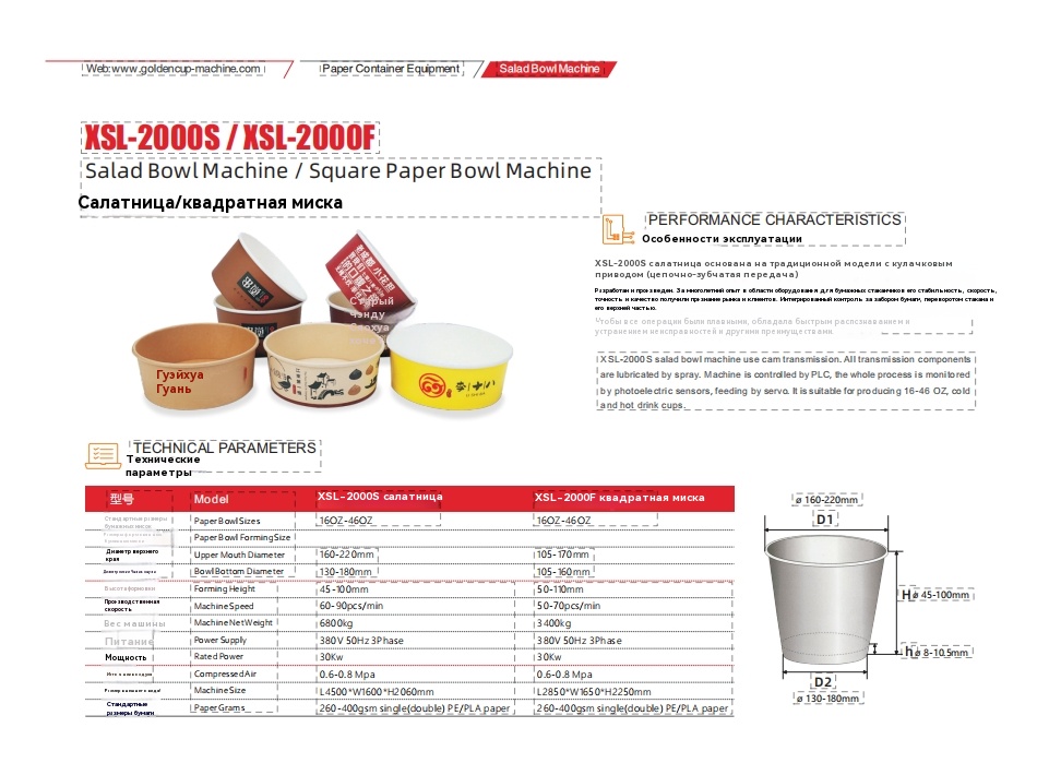 XSL-2000S /XSL-2000F Машина для салата /квадратная бумажная чаша машина